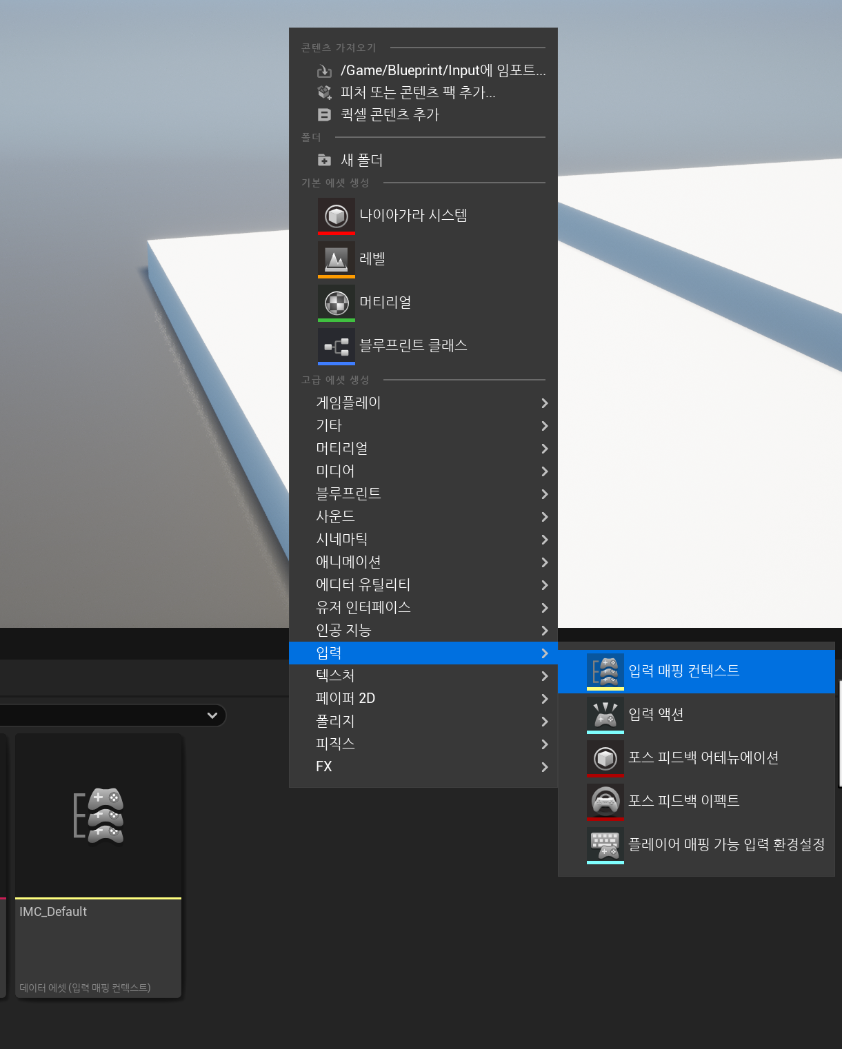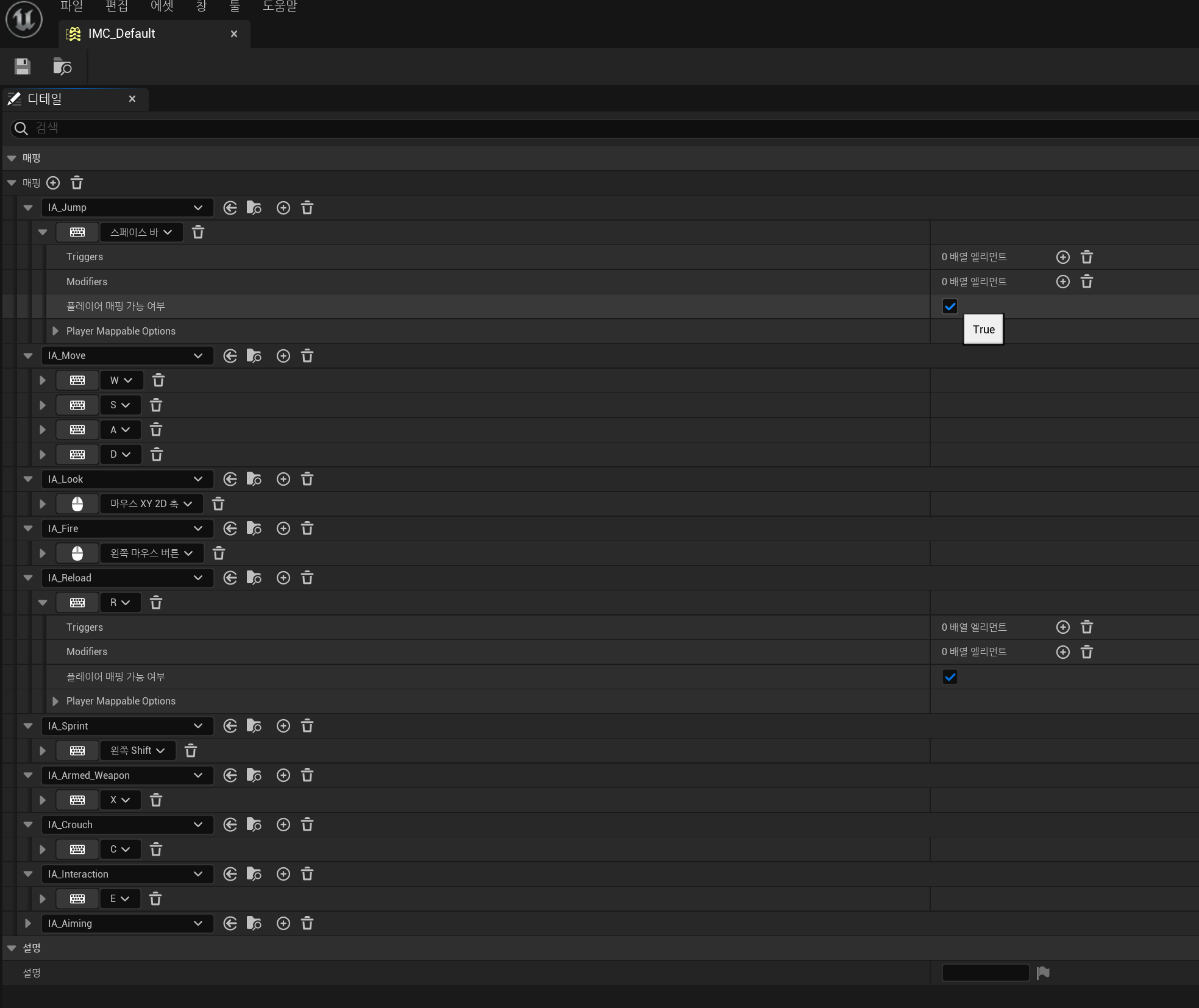 에디터에서 입력 매핑 컨텍스트 BP를 다음과 같이 만들고