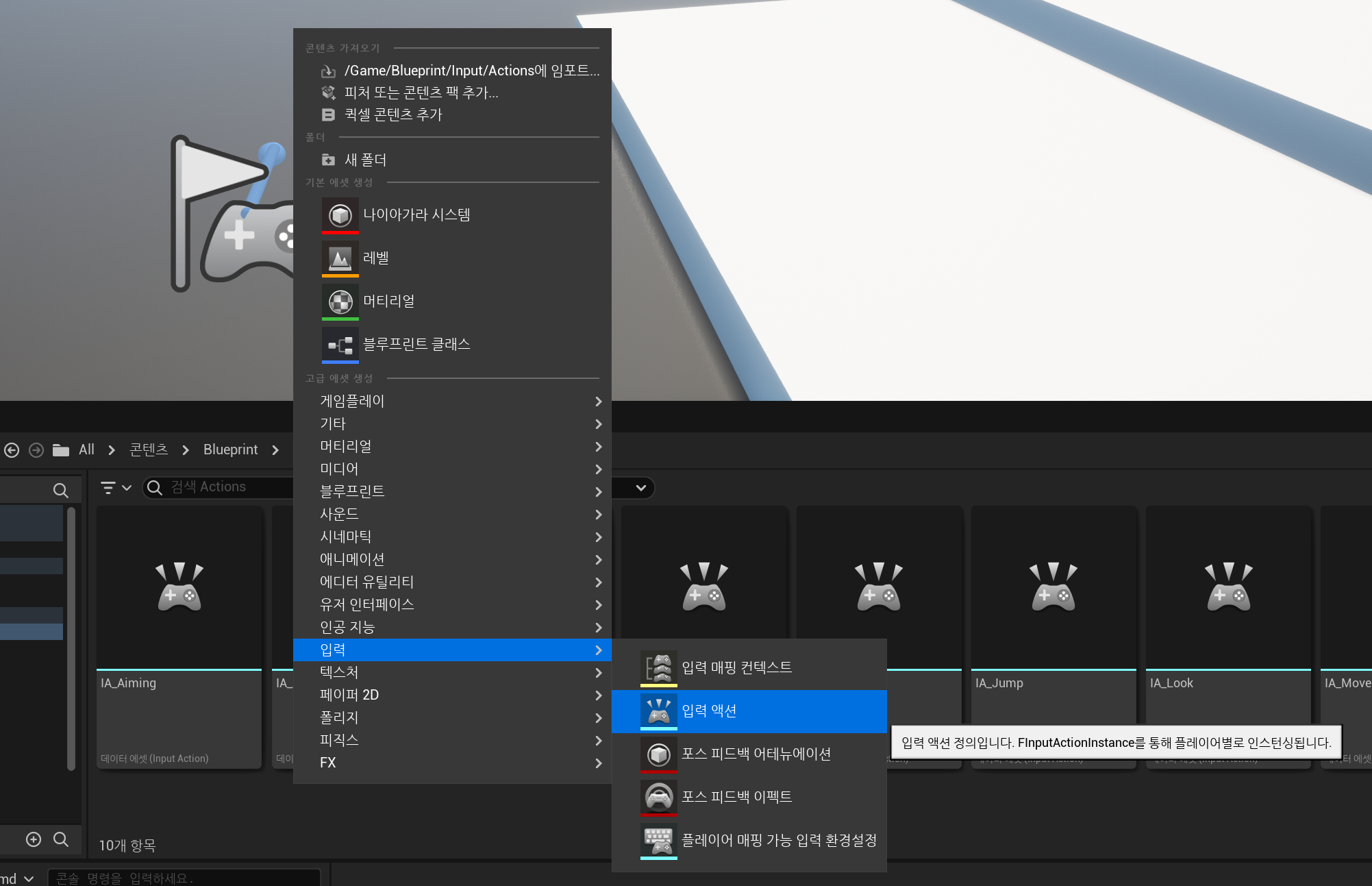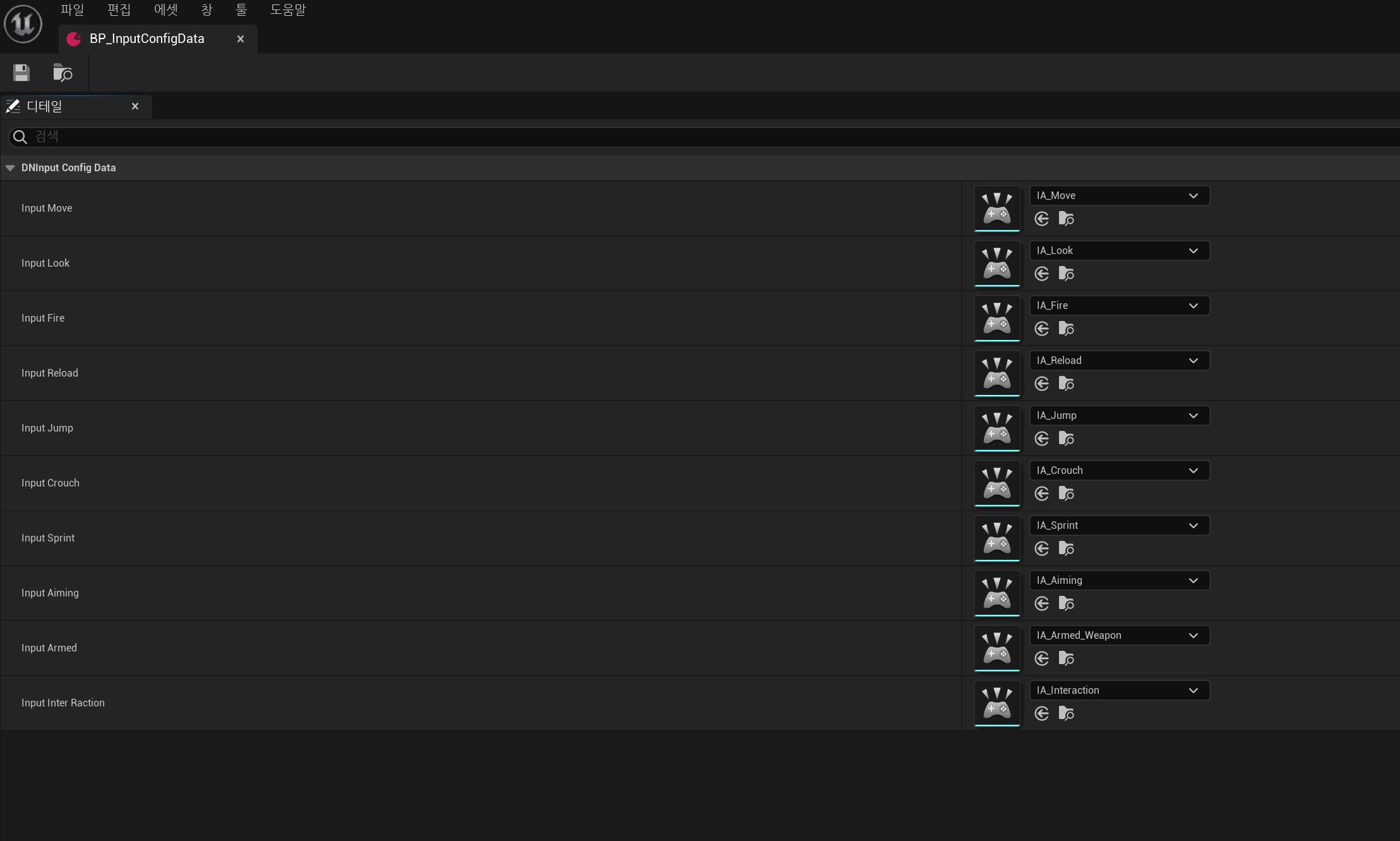 이전 단계에서 만든 인풋 데이터 BP에 담을 InputAction들을 생성해줄거에요.