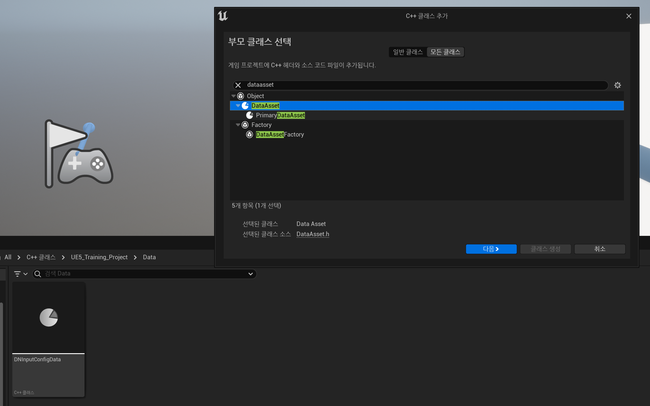 먼저 인풋 데이터를 담을 데이터 에셋 클래스를 만들어주세요.
