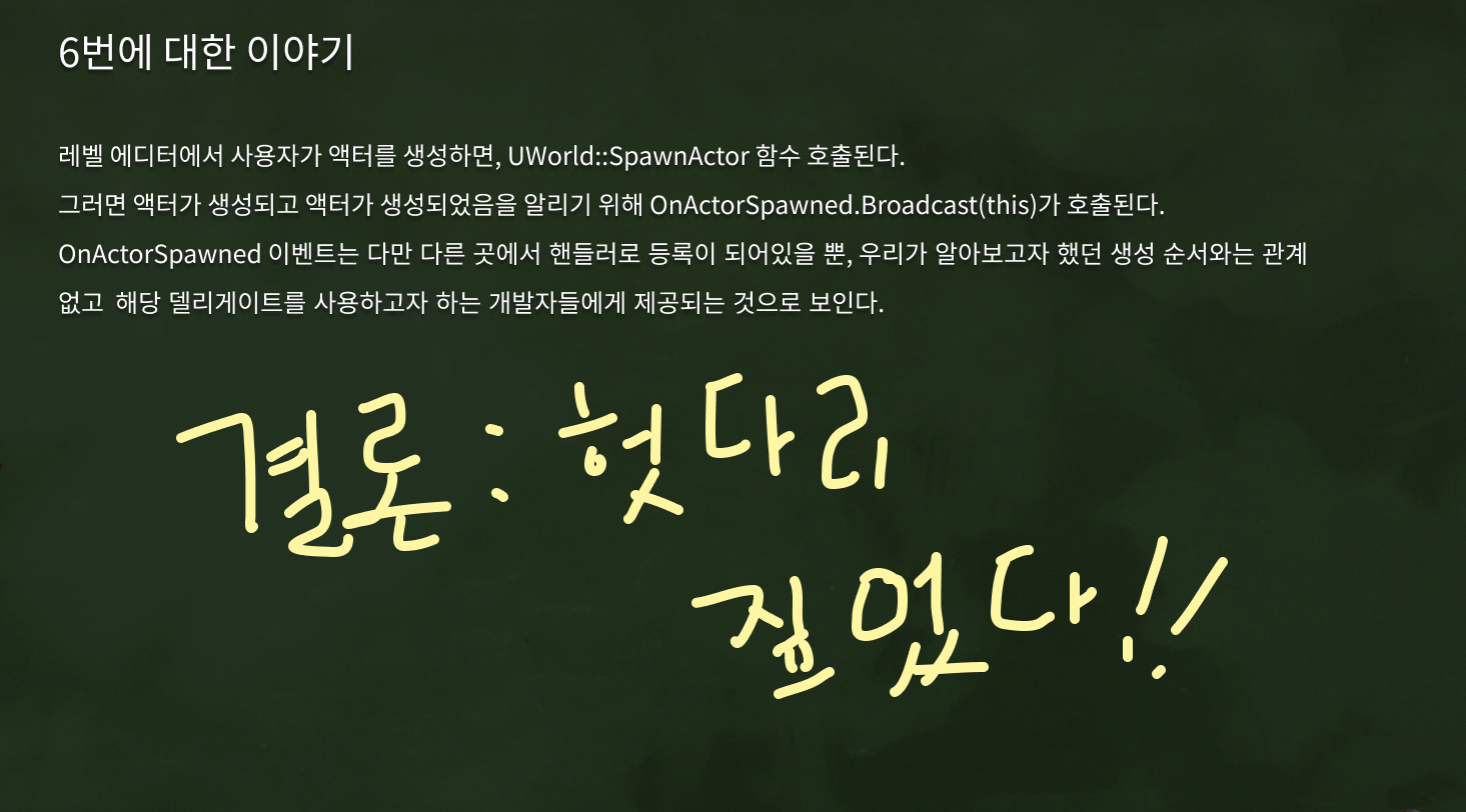 분명히 순서를 고려하면서 구조를 잡았는데 다른게 먼저 호출되어 아직 BeginPlay가 되지않은 액터의 nullptr을 참조하면서 에러를 냈던 상황인거죠.