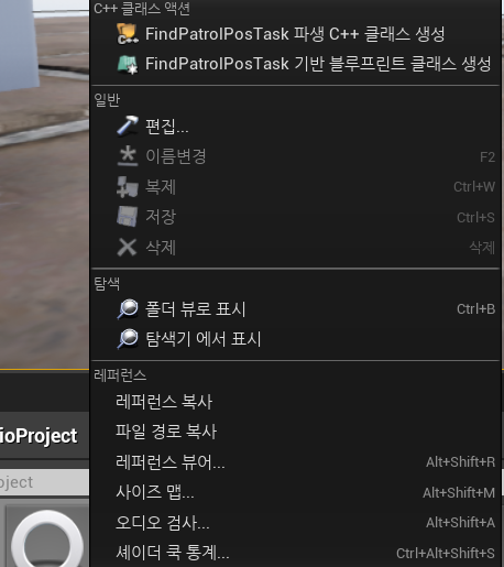 방금까지 만든 FindPatrolPosTask클래스를 BP로 생성합니다.