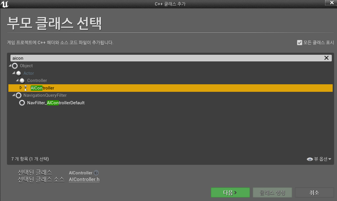 저는 이 클래스 이름을 MeleeEnemyAIController로 정했습니다.
